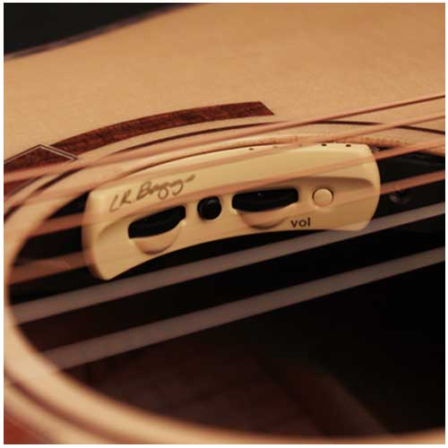 Known for its natural sound, the L.R. Baggs system is elegantly simple with only Volume and Tone controls. The guitar’s solid top and back’s acoustic resonance is fully picked up by the preamp and conveyed in a totally transparent manner to an amplifier or the PA system.