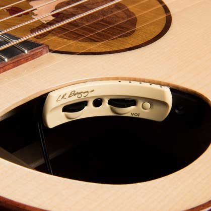 The L.R. Baggs Anthem pickup/preamp system delivers the pure acoustic vibrations of the instrument to the amplifier and PA without any coloration. Unneeded feedback can also be easily and effectively controlled through minimalistic controls that do not interfere with the look of the instrument.