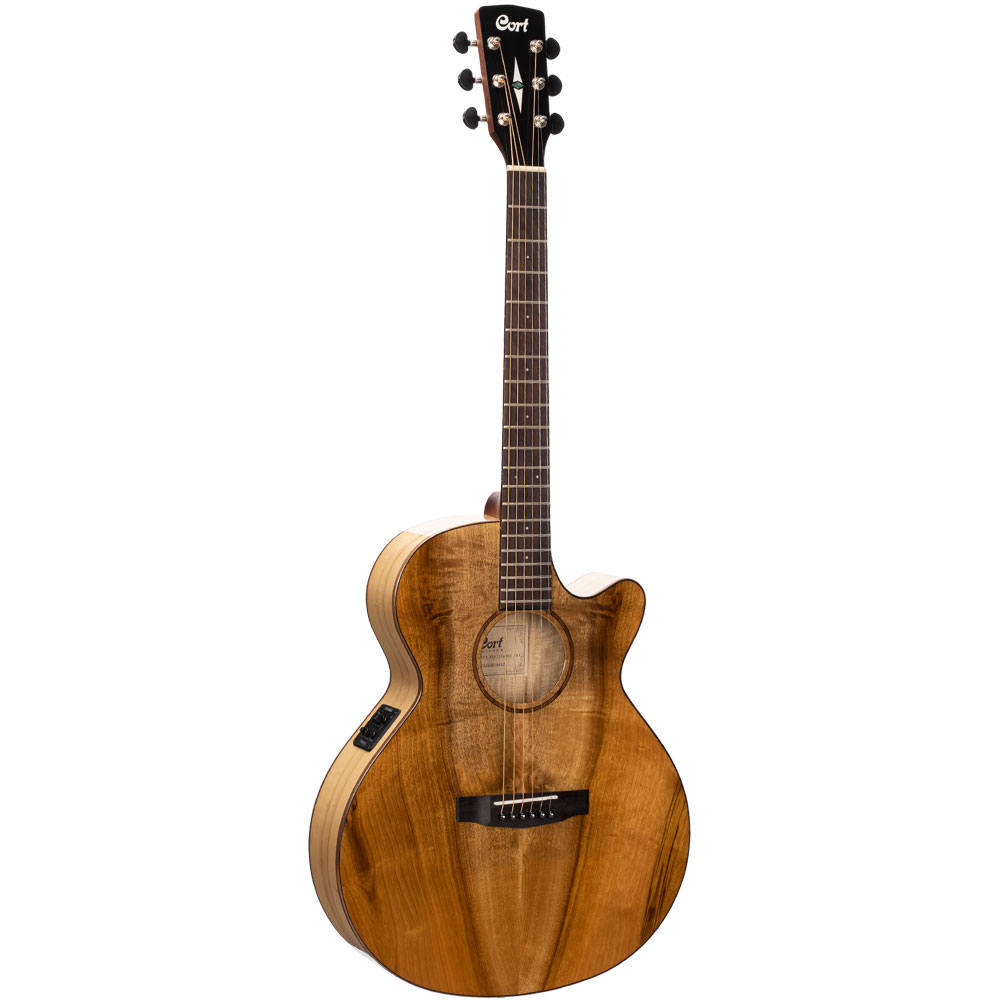 As Cort’s vision of the modern acoustic-electric, the SFX Series features Cort’s own unique slim body shape (83-83mm) with comfortable cutaway, modern V-shape neck profile and jumbo frets for enhanced playability, arched back for improved resonance, and Fishman electronics. The use of exotic wood Myrtlewood gives SFX Myrtlewood a unique look that stands out from rest of the series while enabling it to produce the bright and clear sound with clear sound projection.
