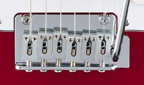 This modern 2-point synchronized tremolo bridge features block steel saddles with a satin chrome finish for a smooth feel…