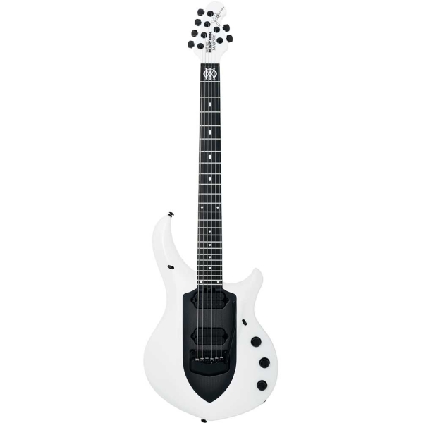 Buy at www.musicianscart.com Music Man JP Majesty 6 GF 600-M2-50-00-CS-BM HH Trem Ebony 6 String Electric Guitar,Glacial Frost,Pickups HH DiMarzio Illuminators Piezo bridge pickup,Mahogany w/Polished Ebony Fretboard neck,Basswood body with maple top and mahogany through neck,Body Finish Matte,Bridge Custom John Petrucci Music Man Piezo floating tremolo, made of black matte, hardened steel with stainless steel saddles,24 Medium Frets Jumbo profile, Stainless Steel,Neck Wood Honduran Mahogany,Fingerboard Ebony,Fret Markers Custom JP Majesty Inlays,Neck Finish Matte,Neck Colors Color matches body,Tuning Machines Schaller M6-IND locking with black buttons,Truss Rod Adjustable – no component or string removal,Through neck design,Electronic Shielding Graphite acrylic resin coated body cavity and aluminum control cover,Controls Custom Music Man active preamp; push/push volume for gain boost, 500kohm push/push passive tone for custom 2 pickup configurations – .022µF tone capacitor,Switching 3-way toggle pickup selector, with custom center position configuration; 3-way toggle piezo/magnetic selector, momentary mono/stereo output knob (Piezo Volume).
