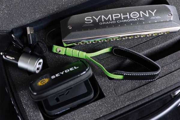 Play your new SYMPHONY Grand Chromatic everywhere you go and initially! The unique heatable case deliveres the right playing temperature making it less suspectible to condensation on the inside of the instrument – humidity can evaporize faster. As accessories the heatable case comes with a USB-adapter for your car-plug, a multi-power-plug-adapter for all international power-ports and a USB-cable to connect with a computer. Additionally there is a SEYDEL-Powerbank (12.000mAh) optionally available.